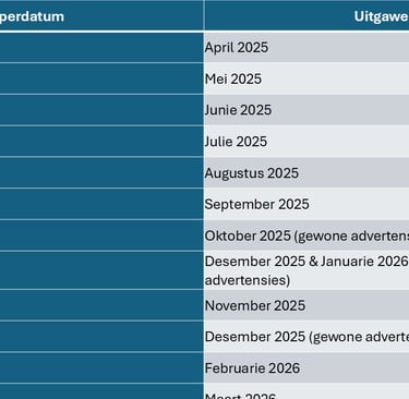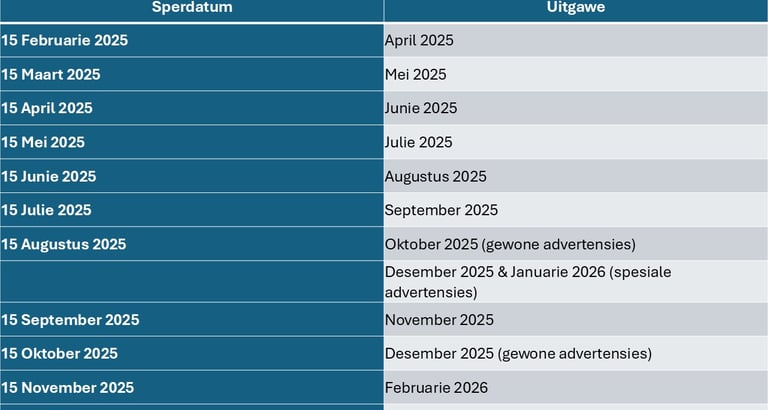 · Let wel: Spesiale advertensies vir die Desember 2025- en Januarie 2026-uitgawes moet voor of op 15 Augustus 2025 bespreek word